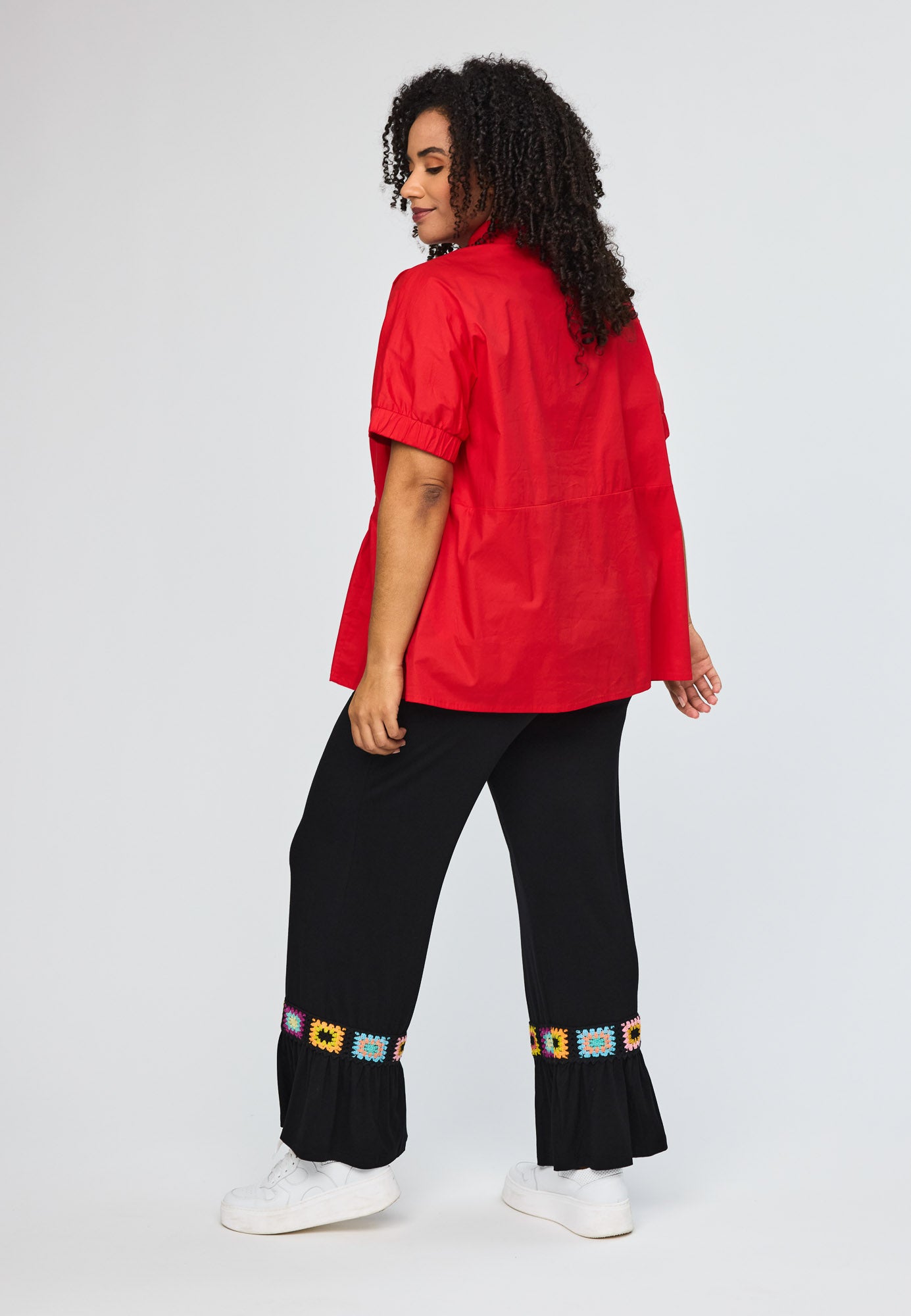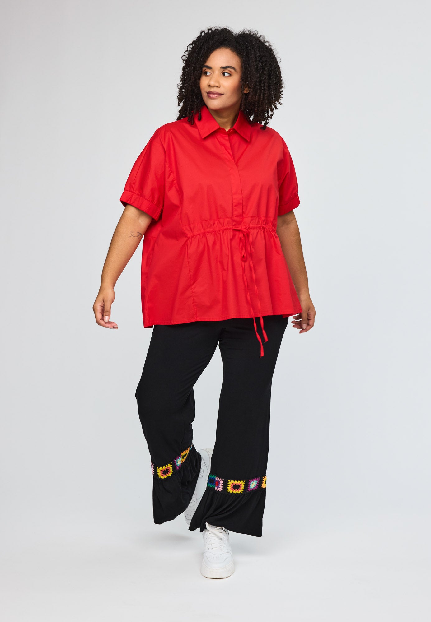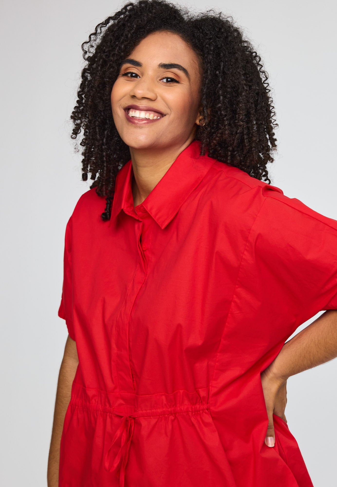 Elegante Kurzarm-Bluse in leuchtendem Rot mit praktischem Binddetail an der Taille. Das durchdachte Design schmeichelt deiner Silhouette und verleiht dir einen modernen, zusammengestellten Look.