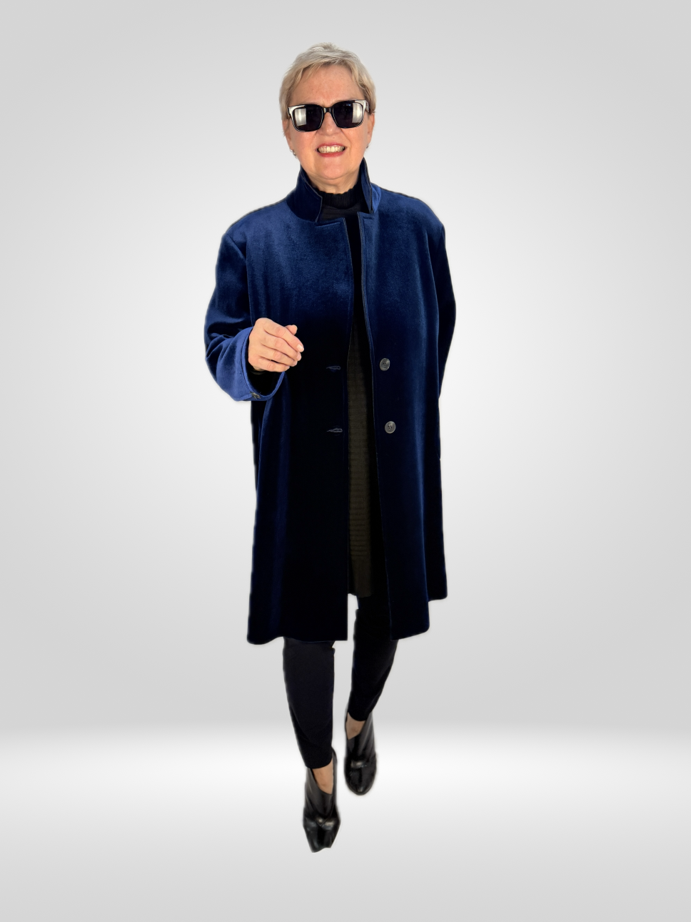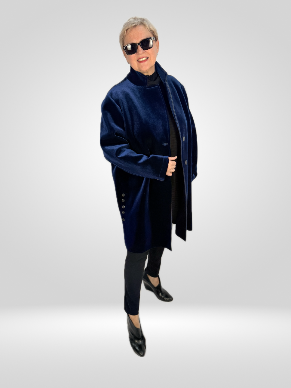 Dieser Mantel von Sophia Curvy verzaubert mit seinem glänzenden Material und einem raffinierten Blau-Lila-Schimmer, der jedem Outfit eine besondere Note verleiht. Leicht und extravagant ist er der perfekte Begleiter für alle, die Stil mit einem verspielten Twist lieben. Ein echter Hingucker für kalte Tage!