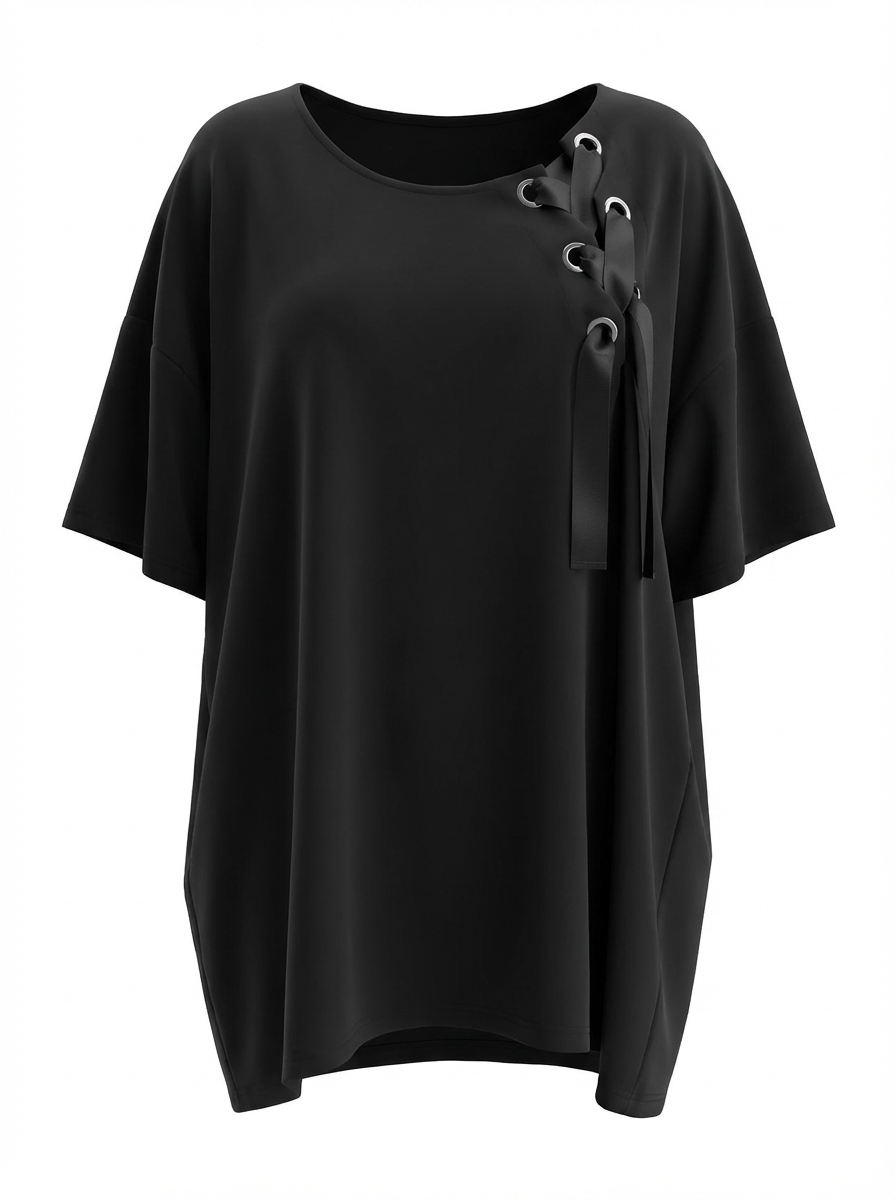 Modernes Shirt von Sophia Curvy mit feiner Schnürung an der Vorderseite – ein Detail, das Eleganz und Persönlichkeit vereint. Das asymmetrische Design schmeichelt deiner Silhouette und verleiht jedem Outfit das gewisse Etwas.